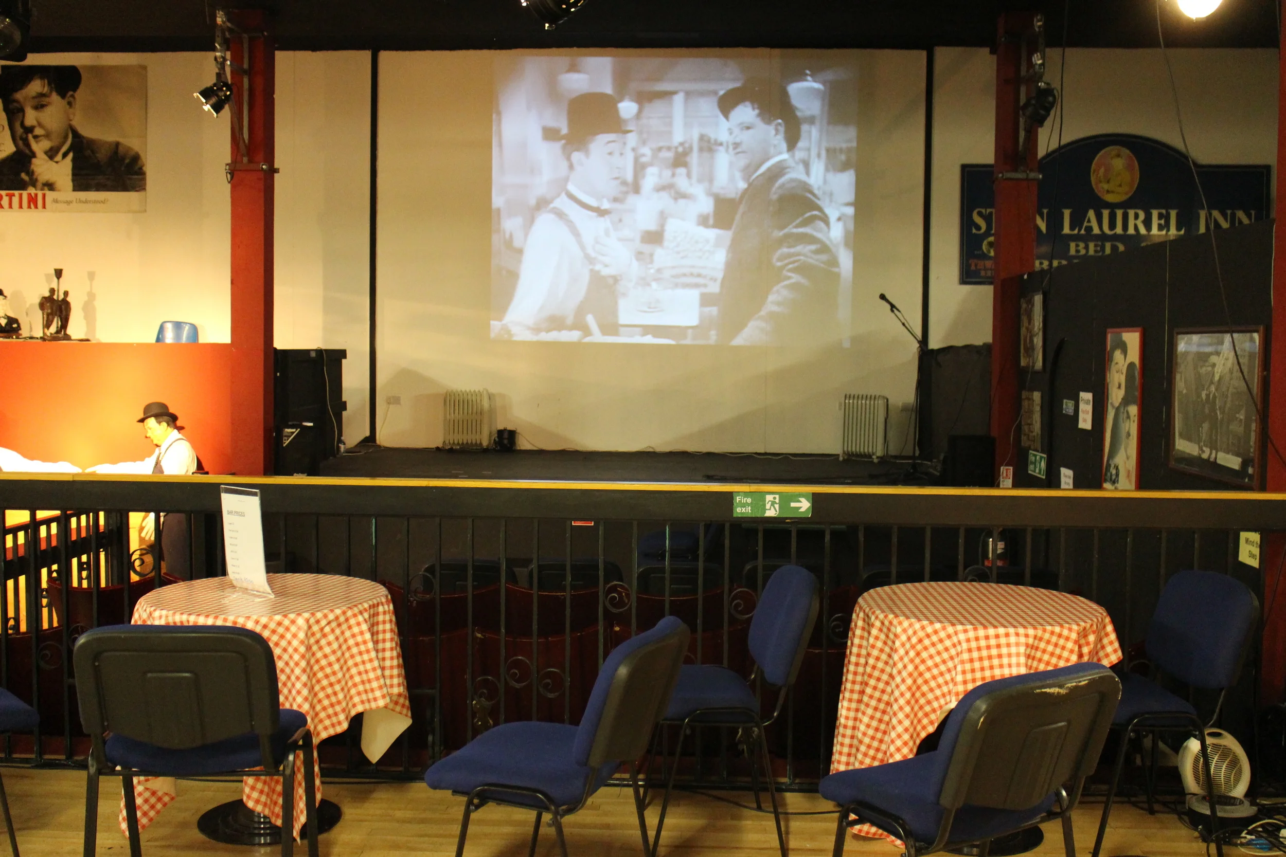 The Laurel and Hardy museum, housed in an old cinema, features a projector playing their films